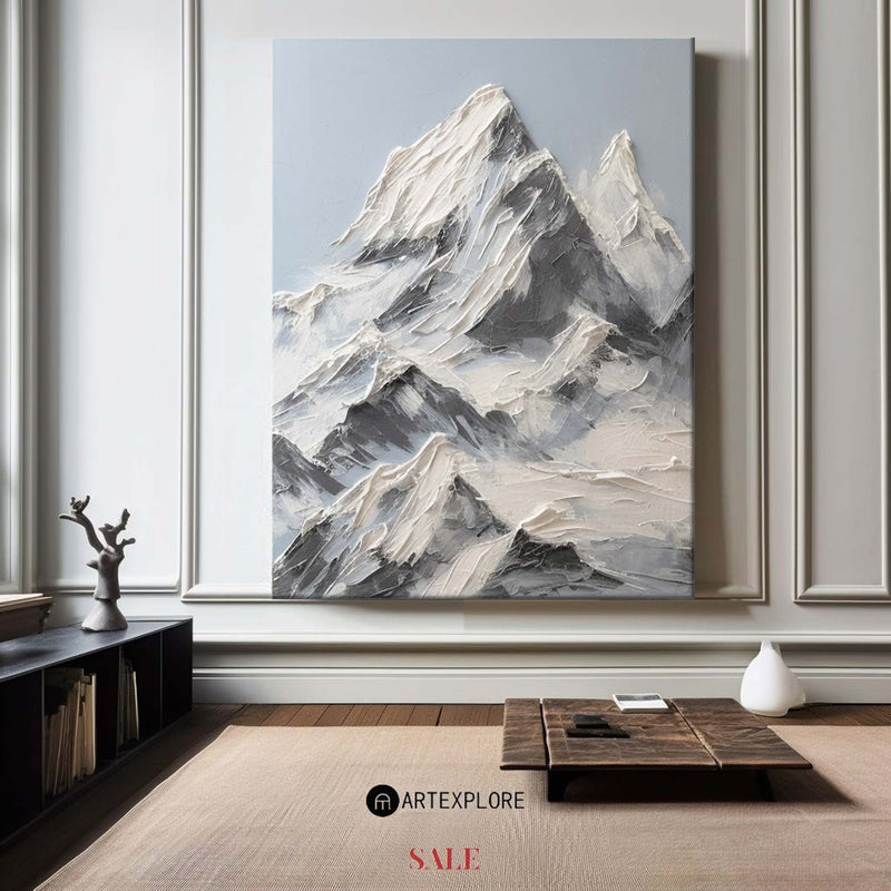 Large Snow Mountain Plaster Painting Mountain Art Blue White Snow Mountain Canvas Painting